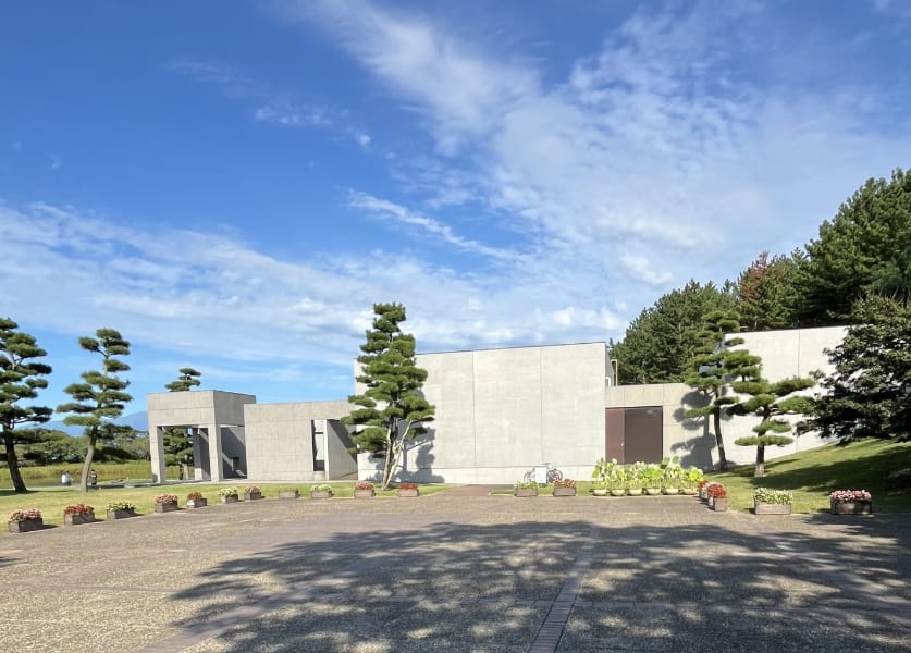 <上は土門拳記念館*記念館の左奥に薄く見えるのは鳥海山。